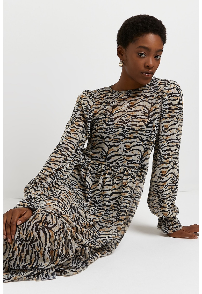 Rochie vaporoasa de vara. Are decolteu rotund cu pliuri, maneci scurte si croi clos accesorizata in talie cu un cordon lejer. Se inchide la spate cu fermoar. Rochie de vara Decolteu rotund Pliuri Maneci scurte Croi clos Fusta captusita Inchidere la spate cu fermoar Material: voal Compozitie: 95% poliester, 5% elastan Instructiuni de intretinere: *Va rugam verificati eticheta produsului inainte de curatare! *Modelul are inaltimea de 174 cm. *Va rugam sa retineti ca o usoara discrepanta de culoare ar trebui sa fie acceptabila datorita luminii si luminozitatii ecranului. *Va rugam verificati ghidul de marimi, in cm, pentru a alege corect marimea.