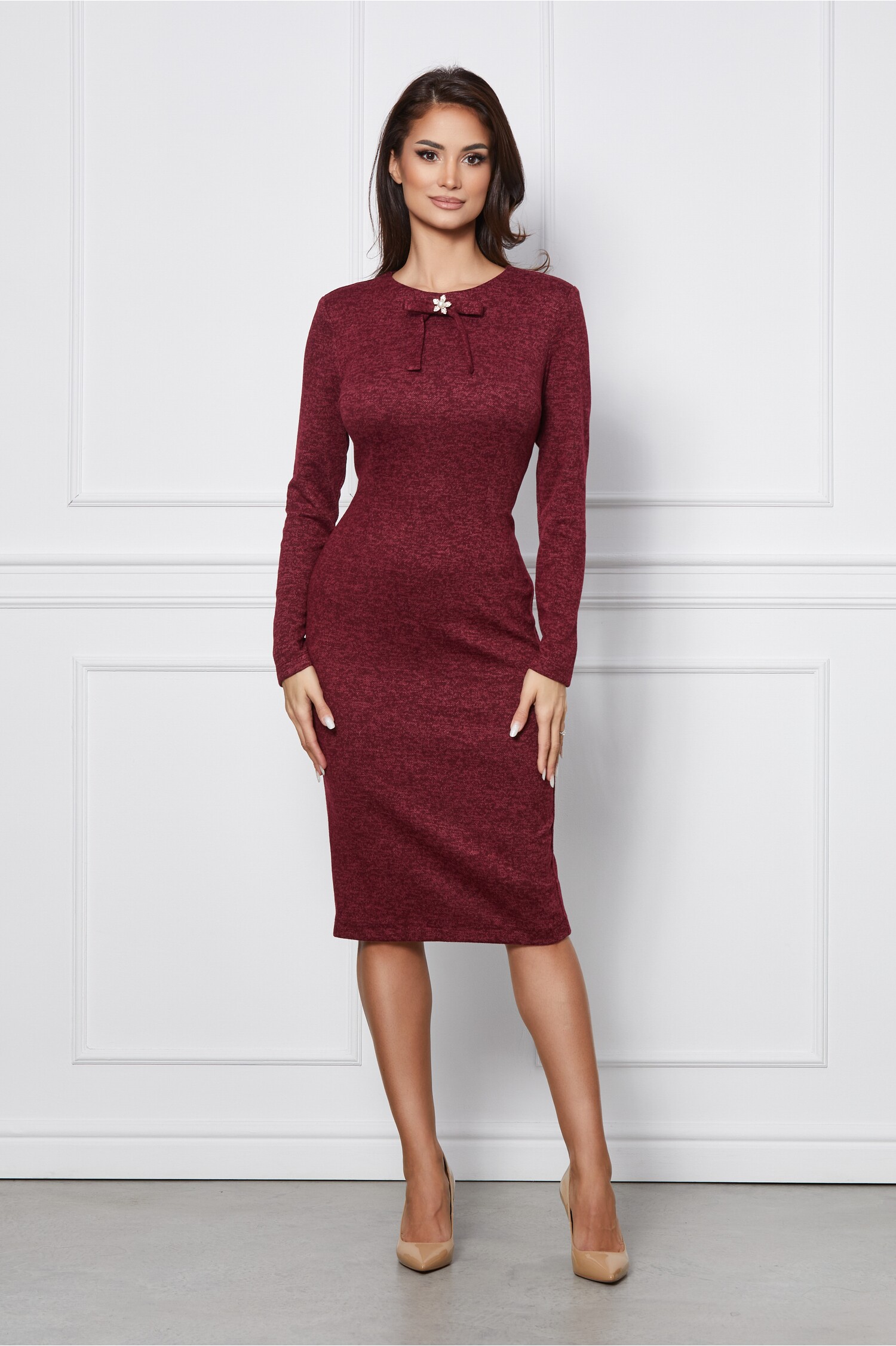 Rochie eleganta accesorizata cu broderie la baza. Are decolteu in V petrecut, croi conic si funda in talie. Rochie eleganta Decolteu in V petrecut Croi conic Funda in talie Captusita pe interior Se inchide cu fermoar la spate Material: Satin, broderie Compozitie: 60% Poliester, 40% Viscoza Instructiuni de intretinere: *Va rugam verificati eticheta produsului inainte de curatare! *Modelul are inaltimea de 174 cm. *Va rugam sa retineti ca o usoara discrepanta de culoare ar trebui sa fie acceptabila datorita luminii si luminozitatii ecranului. *Va rugam verificati ghidul de marimi, in cm, pentru a alege corect marimea.